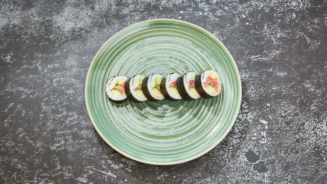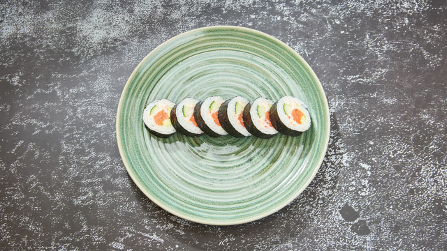 Taste our Futomaki - 6 pieces of big sushi rolls - choose from a wide selection: Vegan, California (Crab Surimi Mix), Tempura (Shrimp), Amager (Salmon with Crab Surimi Mix), Salmon, and Tuna @ onaroll.dk